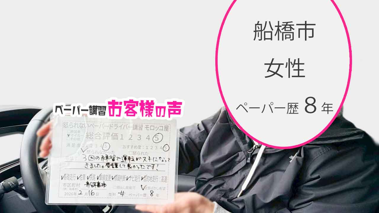 千葉県船橋市を拠点に、安全運転を最重要とする質の高いペーパードライバー講習を出張にてご提供いたします。