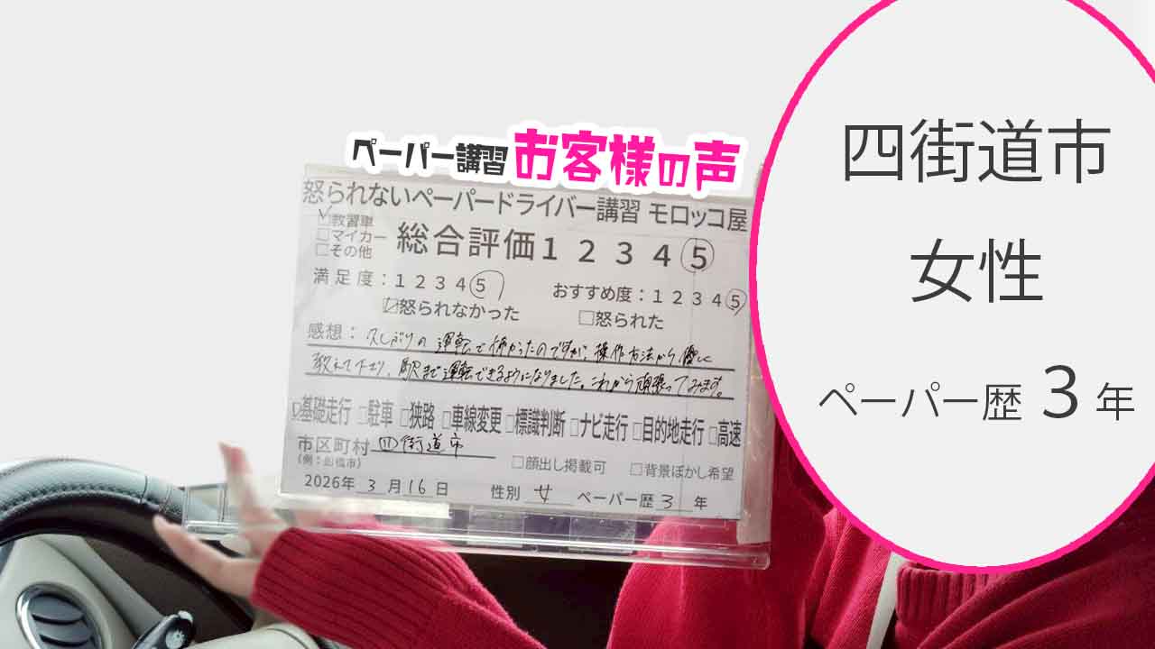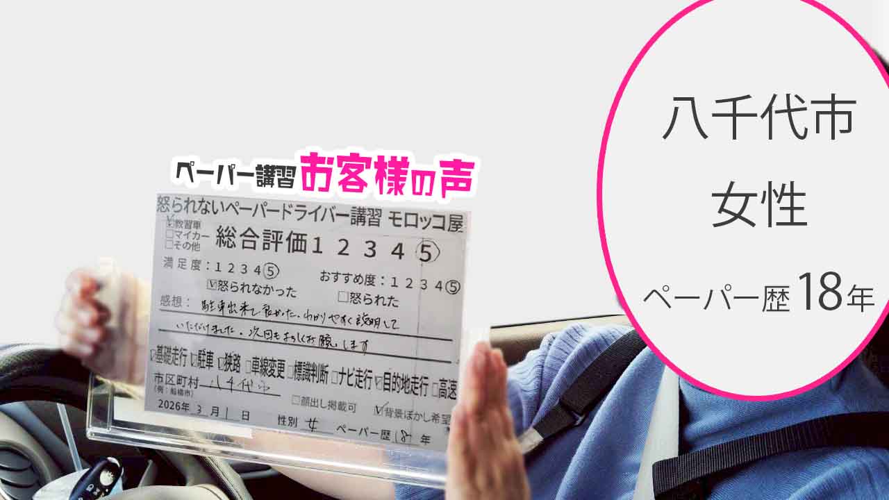 →【 口コミ 】怒られない ペーパードライバー講習 モロッコ屋 千葉