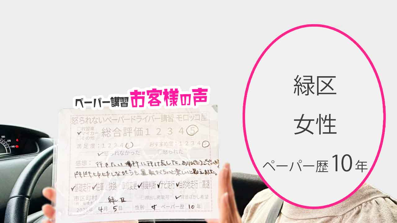 緑区 ペーパードライバー歴10年 女性 マイカー講習