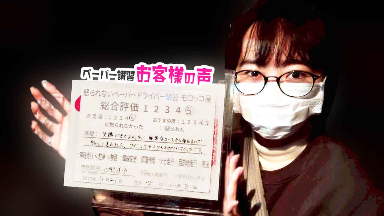 男性受講者の声・口コミ評価ペーパードライバー講習受講者(男性)に記載して頂いたアンケートをご紹介します。過去約30日分の口コミをご紹介します[sitecard subtitle=口コミ(最新版/当社調べ) […]