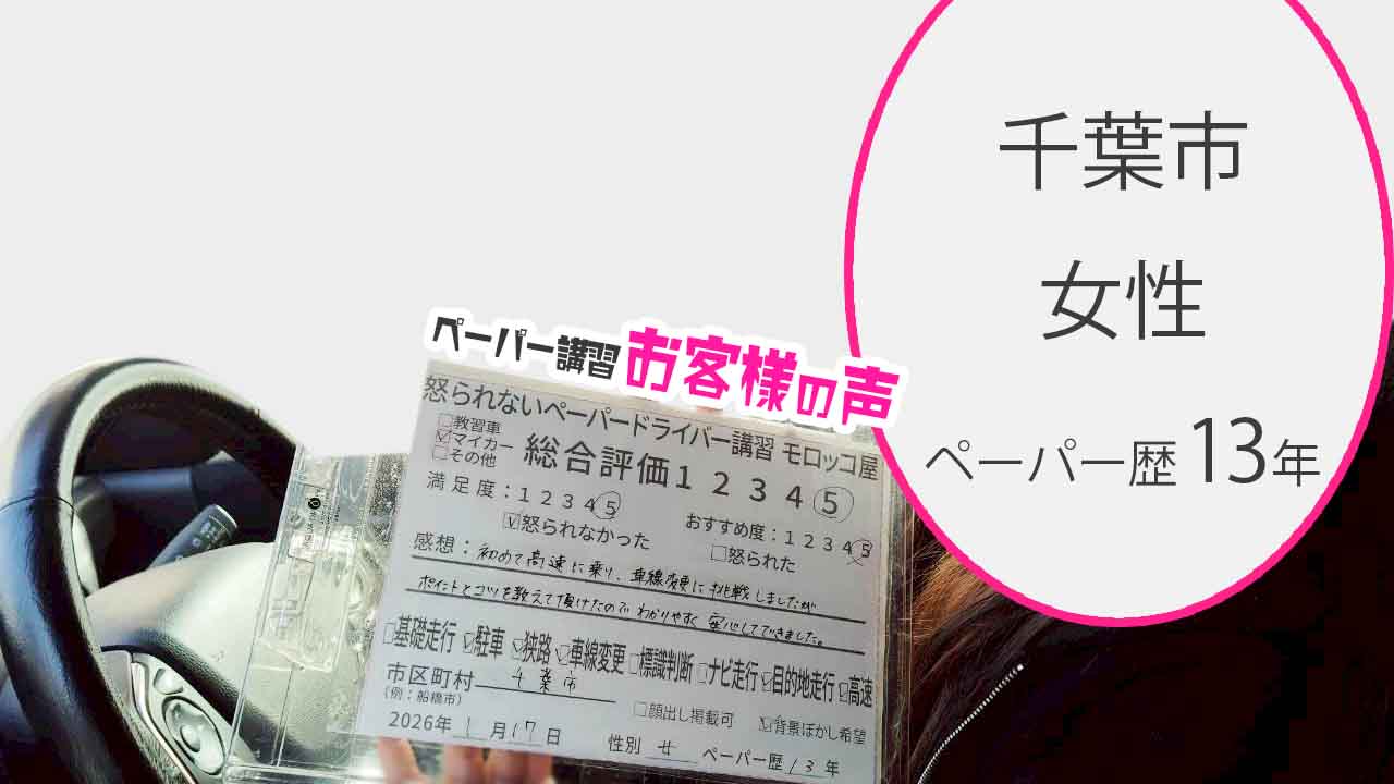 千葉市 ペーパードライバー歴13年 女性 マイカー講習 総合評価:5★★★★★
