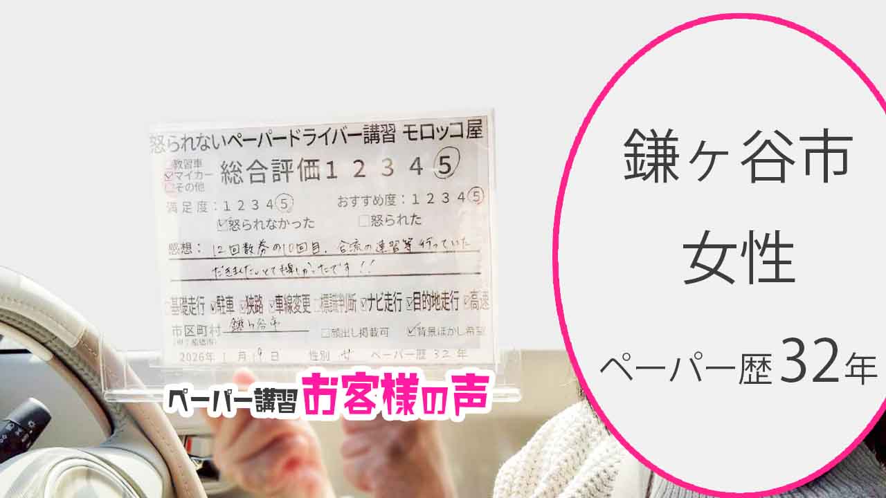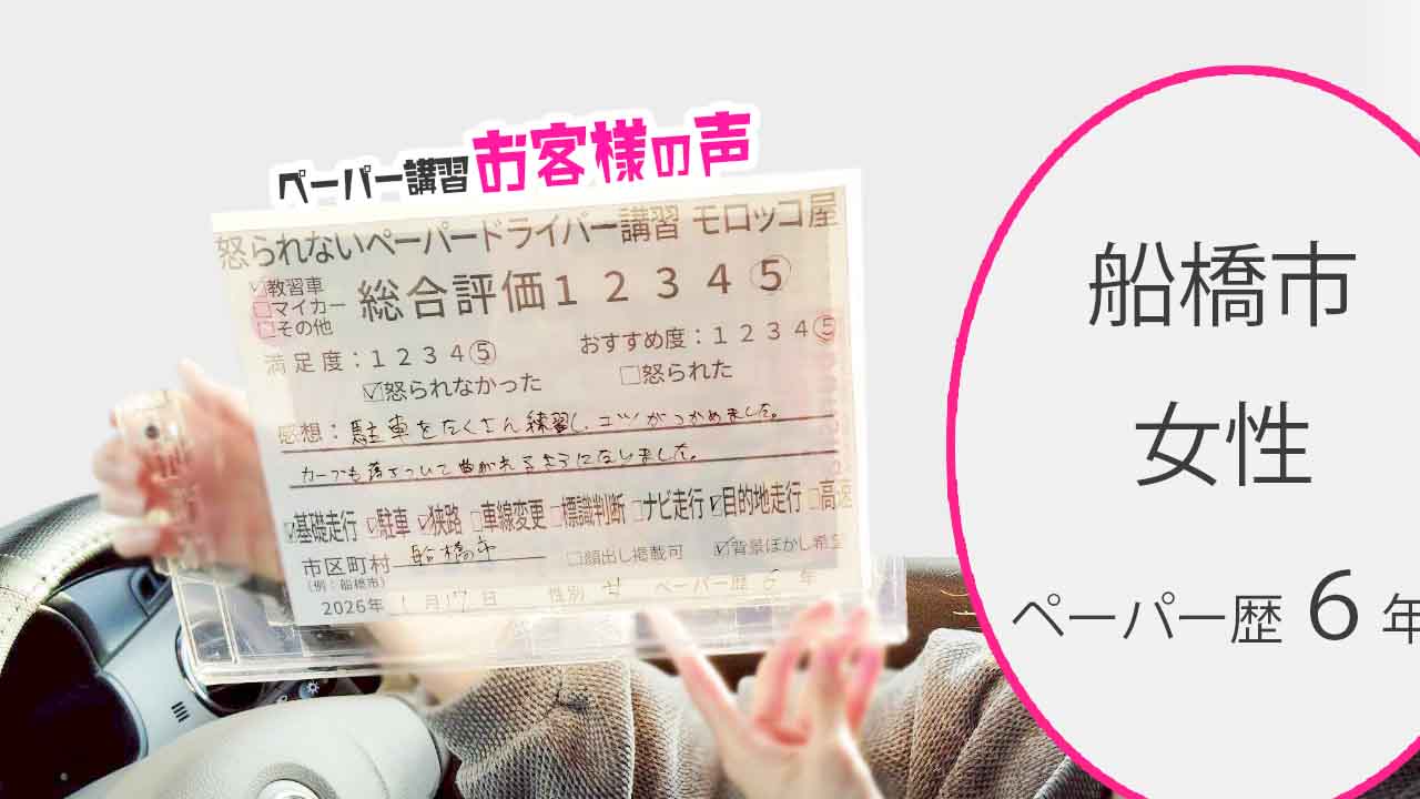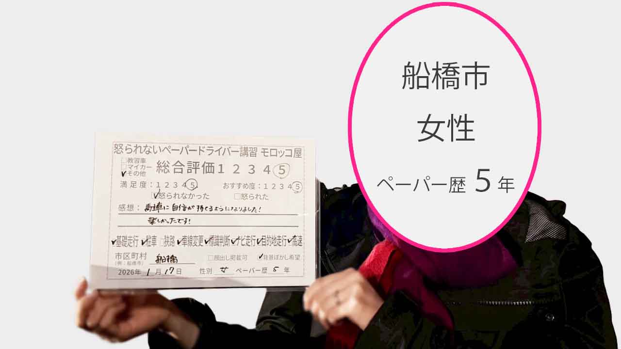 船橋市 ペーパードライバー歴17年 女性 総合評価:5★★★★★