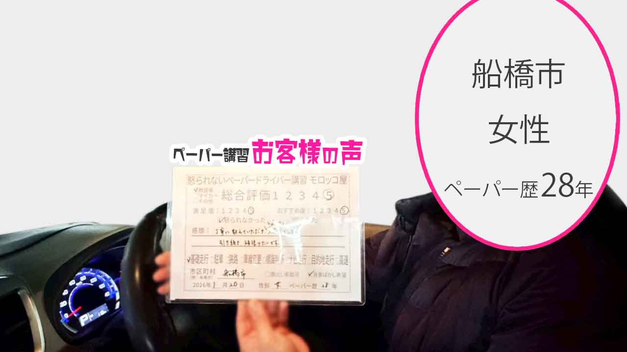 船橋市 ペーパードライバー歴20年 女性 マイカー講習 総合評価:5★★★★★