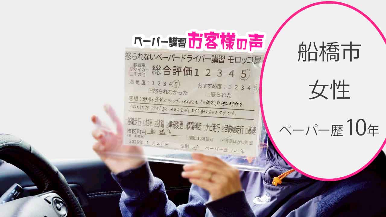 船橋市 ペーパードライバー歴10年 女性 マイカー講習 総合評価:5★★★★★
