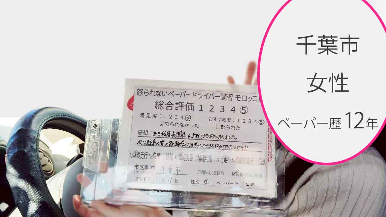 千葉市 ペーパードライバー歴12年 女性 教習車 総合評価:5★★★★★