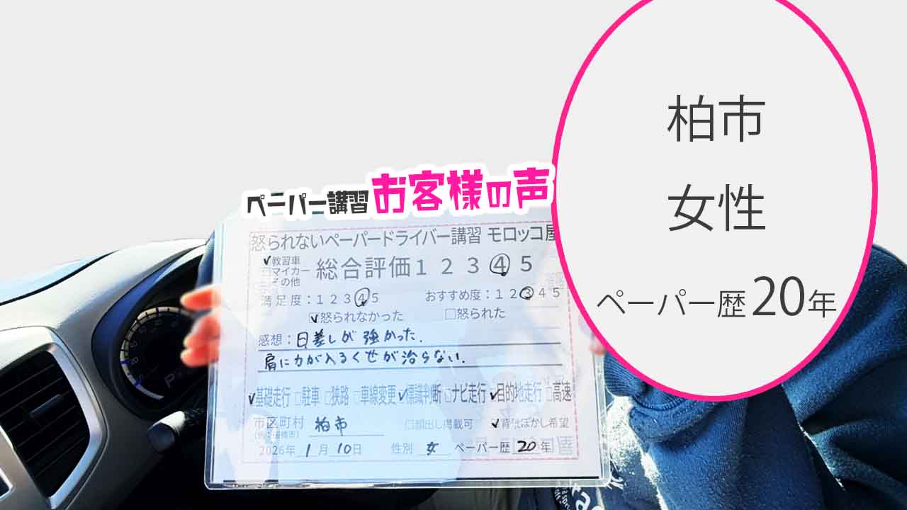 柏市 ペーパードライバー歴20年 女性 教習車 総合評価:4★★★★