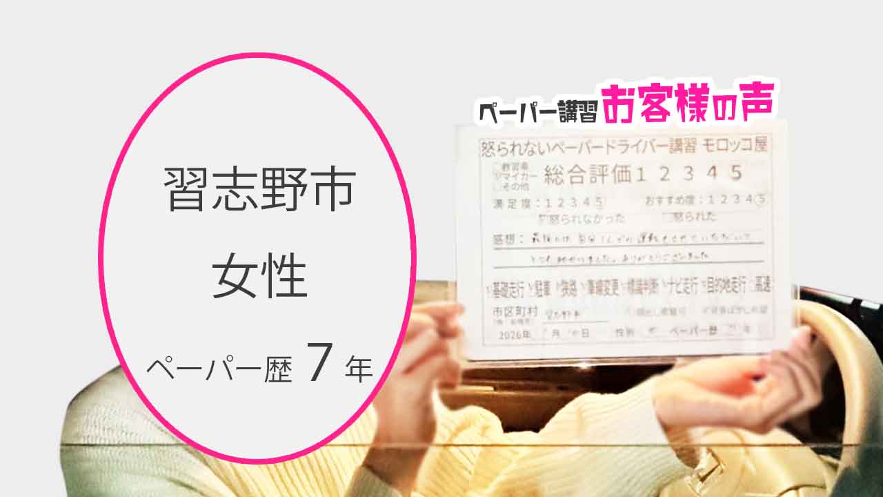 習志野市 ペーパードライバー歴20年 女性 総合評価:5★★★★★