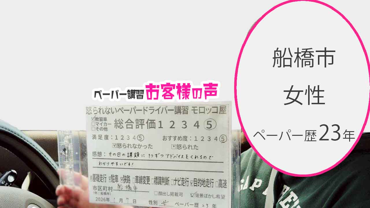 船橋市 ペーパードライバー歴23年 女性 マイカー講習 総合評価:5★★★★★