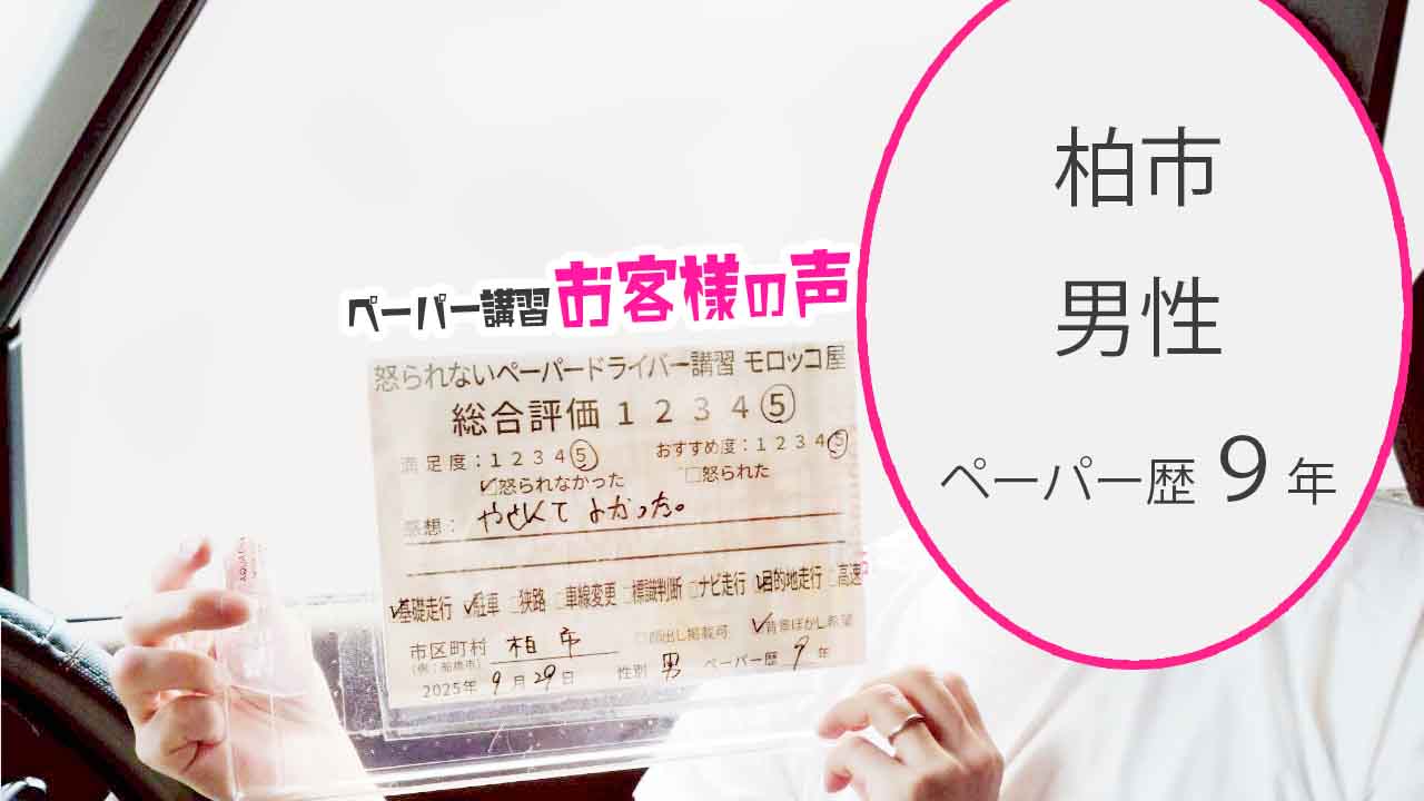 柏市 ペーパードライバー歴9年 男性 総合評価:5★★★★★