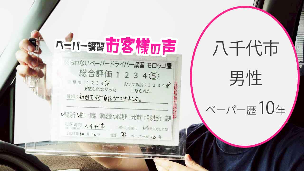 八千代市 ペーパードライバー歴10年 男性 総合評価:5★★★★★