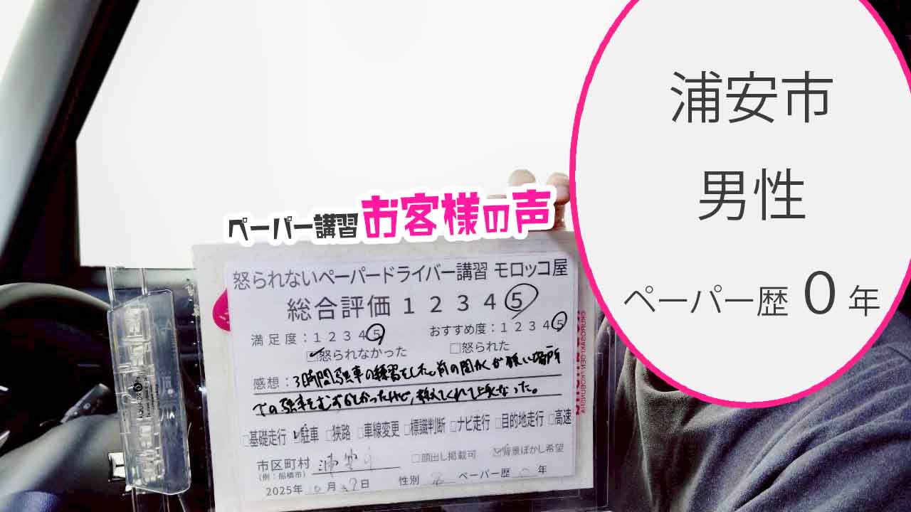 浦安市 ペーパードライバー歴0年 男性 総合評価:5★★★★★