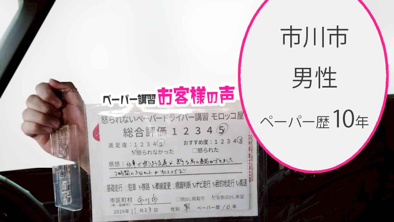 市川市 ペーパードライバー歴10年 男性 総合評価:5★★★★★